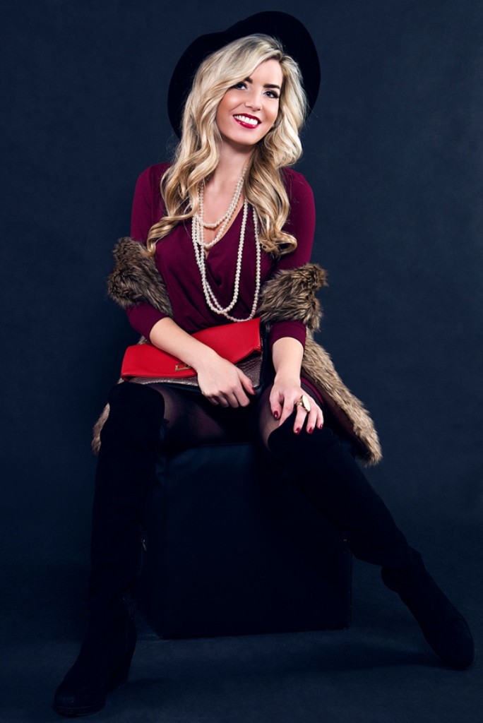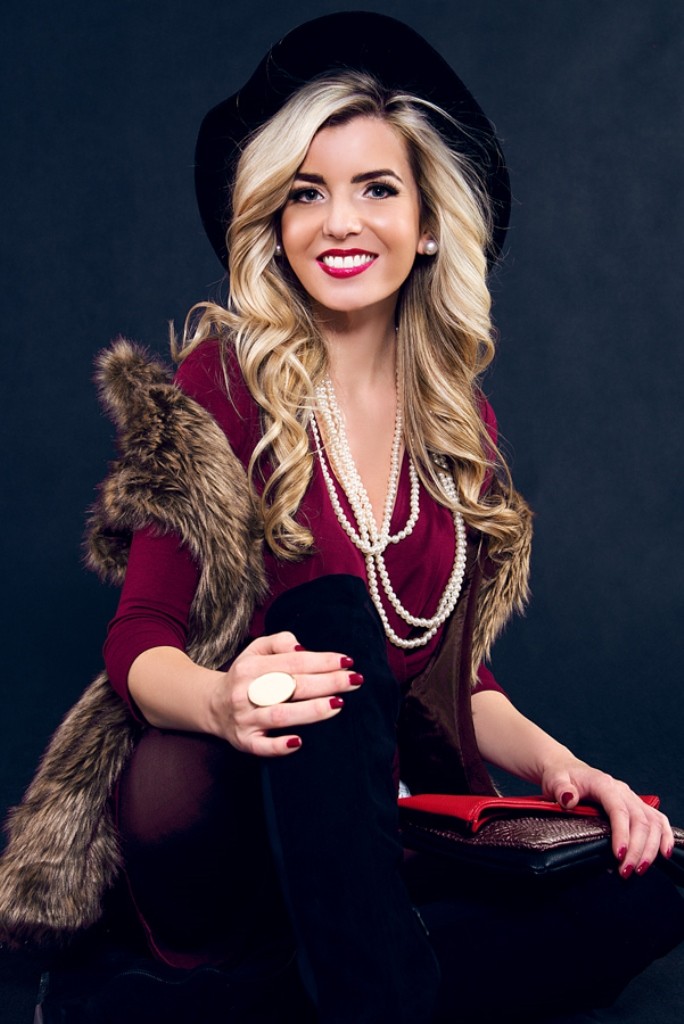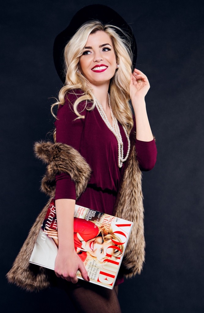 S vínovou farbou overalu som sa veľmi rýchlo naladila na jesennú vlnu a celkový look oživila obľúbenou kožušinovou vestou a výrazným klobúkom, do ktorého som sa túto sezónu jednoducho zamilovala.