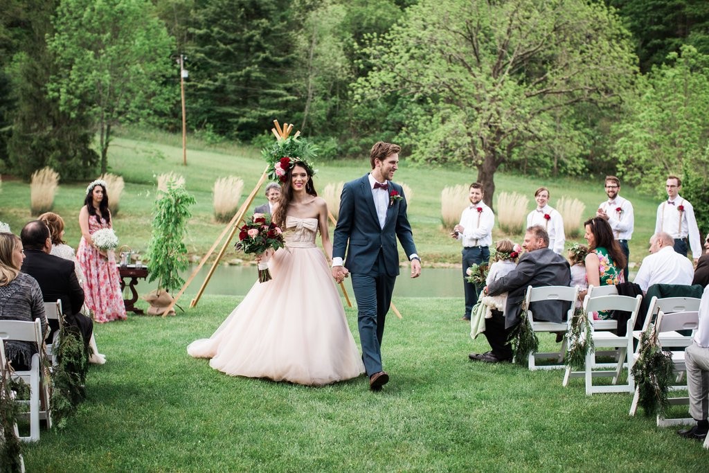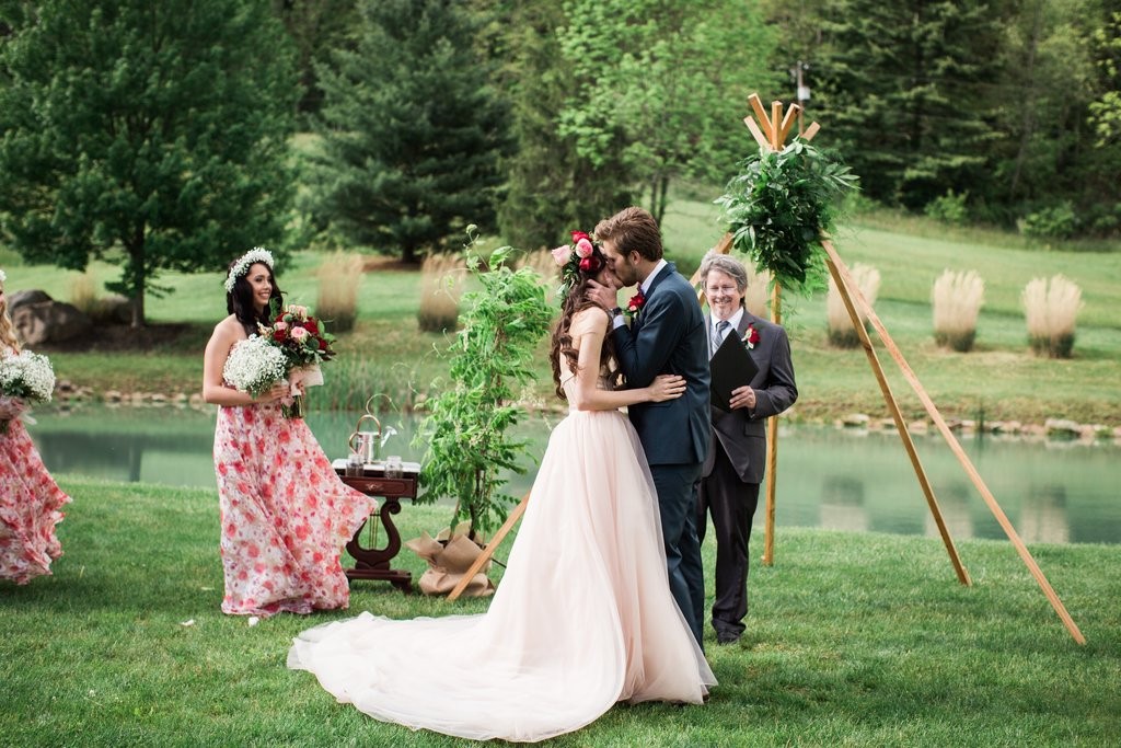 Pozrite si fotografie tejto nádhernej nevesty, ktorá si zvolila svadobné šaty v jemnej ružovej farbe a dokonalo ich spojila s prvkami v boho štýle. Viete si niečo podobné predstaviť aj na svojej svadbe?