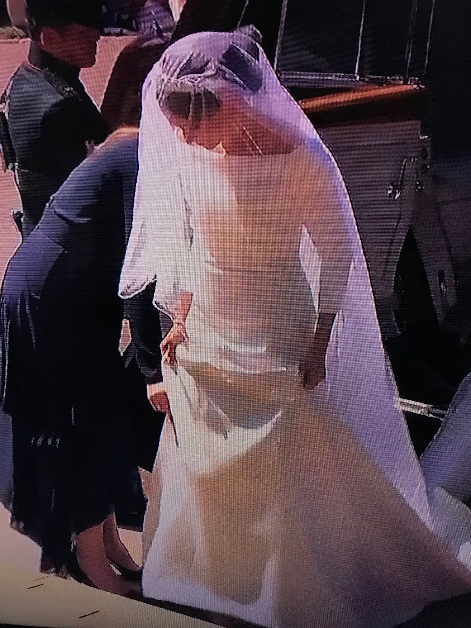 Kým pozornosť fanúšikov sa sústredila na celý obrad, ženy zaujímali práve nevestine šaty. Tie boli do posledného momentu prísne stráženým tajomstvom. Meghan ostala verná svojmu štýlu a obliekla si veľmi jednoduchú bielu róbu bez čipiek od britskej dizajnérky Clare Waight Keller. Hlavu jej zdobila diamantová tiara a takmer 5 metrov dlhý závoj. Markle zvolila úplne iné svadobné šaty ako Kate, Pippa alebo v minulosti princezná Diana.