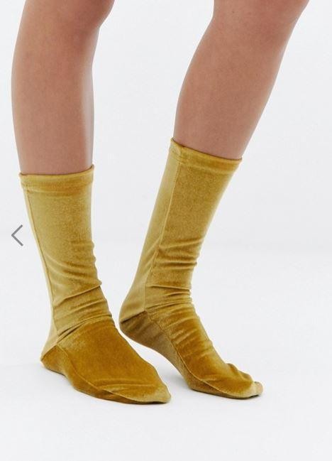 Aj vám tieto šialené sametové ponožky v horčicovej farbe niečo pripomínajú?