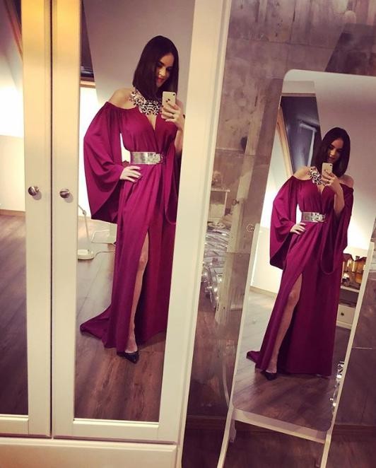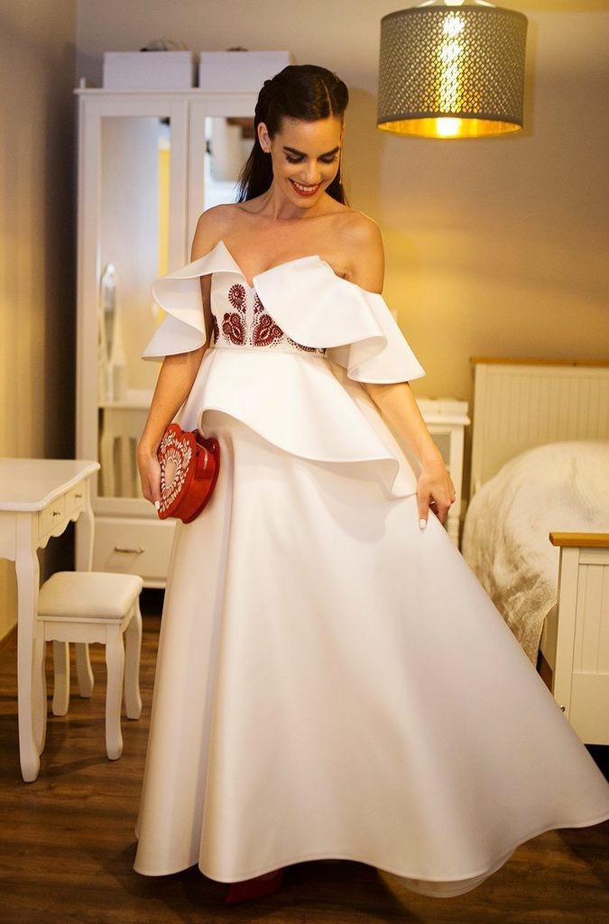 Takto pred rokom zaujala rafinovaným modelom, ktorý navrhla Andrea Pojezdálová. Tento rok sa opäť zverila do jej rúk a výsledok? Ten naozaj stojí za to! Zdanlivo jednoduché bordové šaty vynikajú rafinovaným strihom, ktorý Petre veľmi svedčí. Navyše ich doplnila opaskom a šperkami z vlastnej dielne. Krásne, čo poviete?
