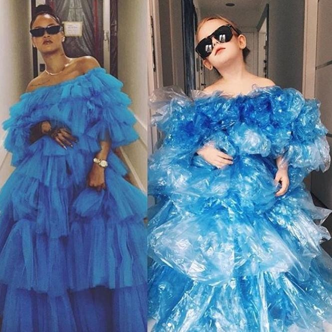 Ak hľadáte nejakú zábavku pre deti, skúste sa inšpirovať touto mamou. Spoločne s dcérkou našli záľubu vo vytváraní napodobnením outfitov známych žien. Bonusom je, že všetko vytvárajú z naozaj netradičných materiálov ako sú alobal, papier, noviny, kartón, igelitky a podobne.
