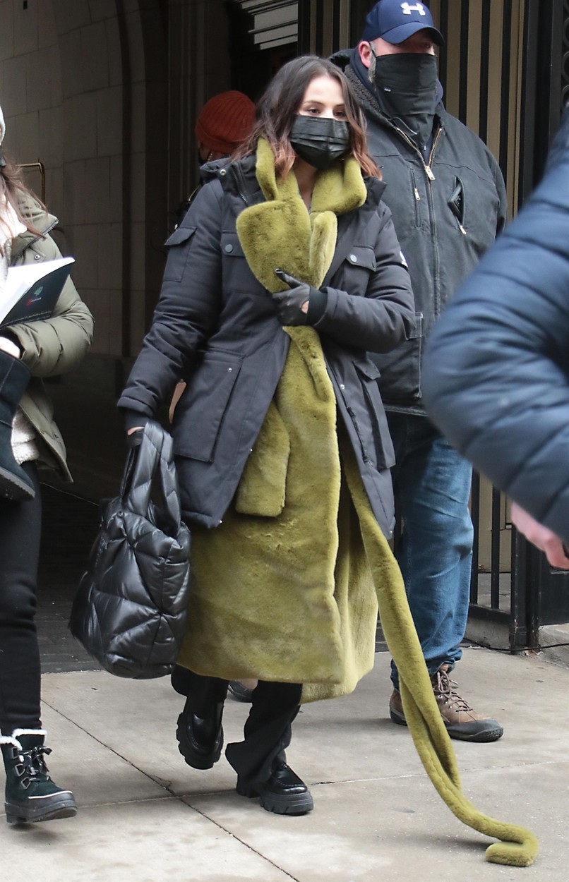 Veľké huňaté kabáty si obľúbila aj speváčka a herečka Selena Gomez a najnovšie bola pri natáčaní v New Yorku doslova neprehliadnuteľná práve v trendy kúsku v smaragdovo zelenom odtieni.
