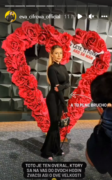 "Objednala som si zo Zary overal a vyzerala som v ňom ako jaternica. Za to si môžem sama, pretože som sa predtým extrémne najedla...Moja chyba... Ten overal bol o 5 centimetrov dlhší a keď som išla do kina, rukou som si držala nohavice, aby som vedela chodiť. To som si ešte povedala, že to zvládnem...Keď som z premiéry vyliezla, ten overal sa vygajdal ako starý vecheť. Mala som ho asi o 10 centimetrov dlhší a v rozkroku mi visel neviem aký dlhý kus látky. Rýchlo som utekala domov. Ja si ten overal už v živote neoblečiem..." posťažovala sa Eva. Kráska mala jediné šťastie, že fotografom pózovala pred premiérou a nie po nej...
