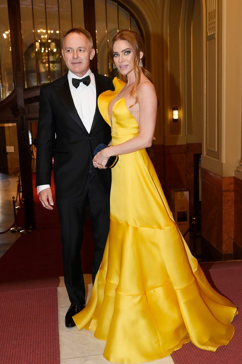 Kanárikovo žltá róba s hlbokým výstrihom nechala vyniknúť jej prednosti ale aj krásne opálenú pokožku. K výrazným šatám zvolila čiernu puzdrovú kabelku a visiace diamantové náušnice a viac naozaj nebolo treba.
