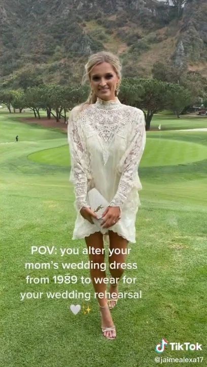 Jaime Guillory, ktorá zverejňuje príspevky na TikToku ako „aimeguillory“ zverejnila video, v ktorom ukázala svadobné fotografie svojej mamy z roku 1989 a následne sa sama predviedla v rovnakých šatách, ktoré si však na svoju svadbu upravila podľa svojich predstáv.