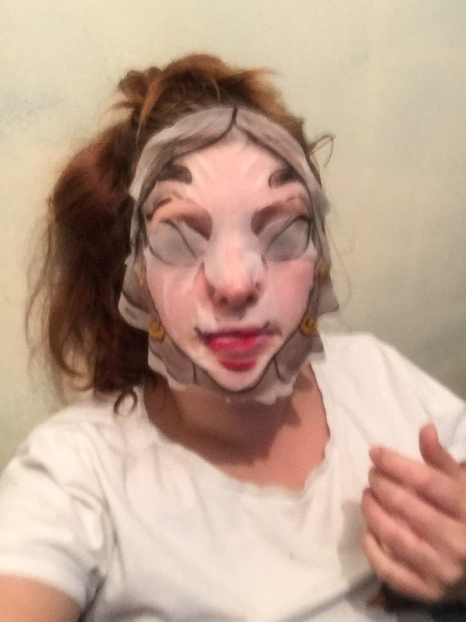 Napustila si vaňu a masku si rozprestrela na tvár bez toho, že by sa videla. Keď vyliezla z vane, masku si ešte nechala pôsobiť, ale stále netušila, ako v nej vyzerá.