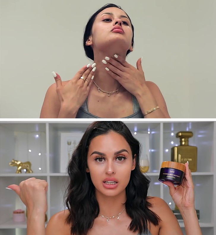 Plastickí chirurgovia upozorňujú, že v poslednom desaťročí sa zvýšil výskyt vrások na krku a v okolí brady u žien mladších ako 40 rokov. Poloha hlavy smerom dole pri pohľade na smartfón pôsobí na svaly a pokožku na krku negatívne. To je dôvod, prečo máme na krku výrazné ryhy a dvojitú bradu. Zvyk držať knihu alebo smartfón na úrovni vašich očí pomôže zabrániť predčasnému vzniku vrások. Nezabúdajte si tiež svoje mobilné zariadenia vypínať aspoň hodinu pred spánkom. Tento zvyk pomôže vášmu telu produkovať viac melatonínu, ktorý spomaľuje proces starnutia.