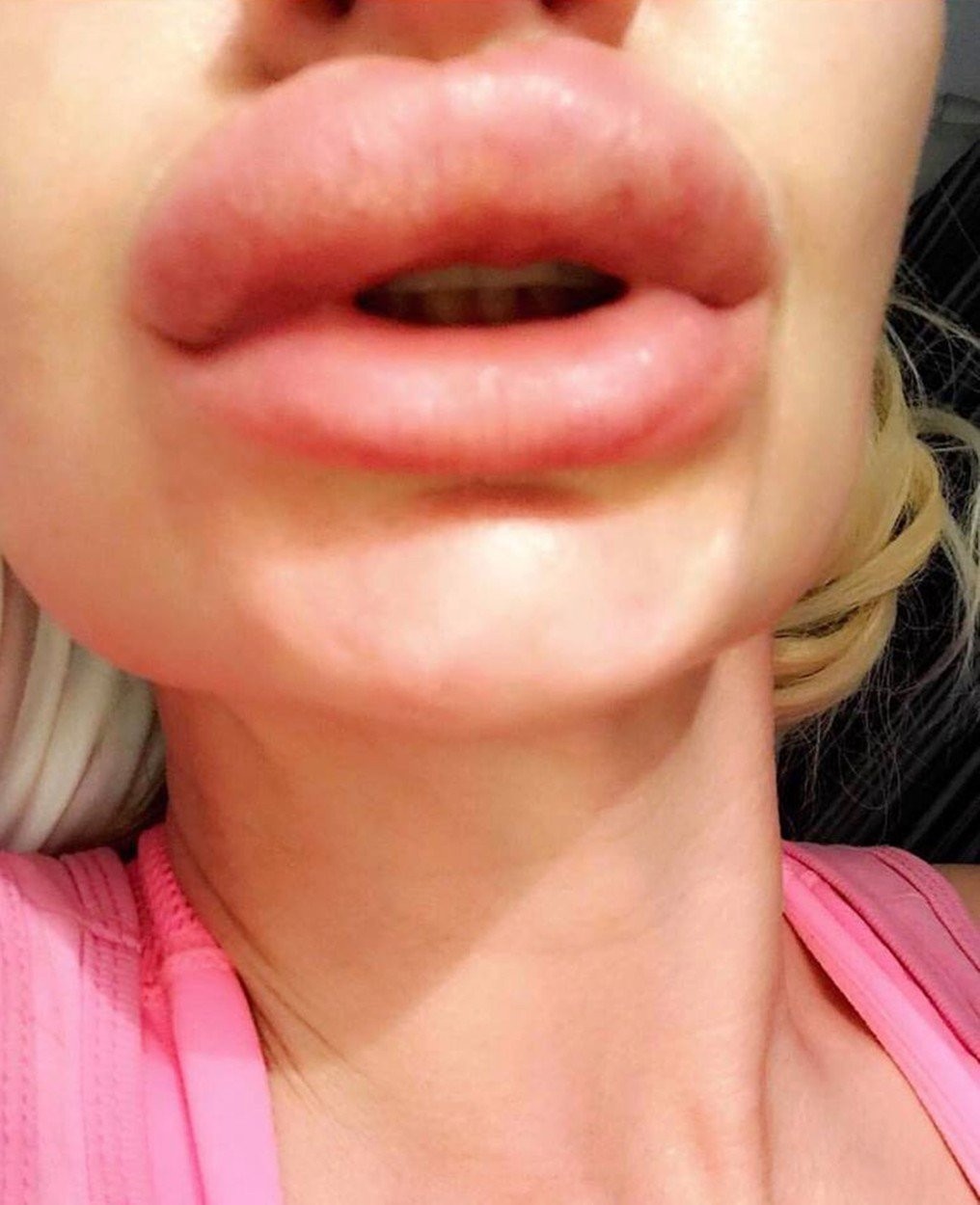 Krátko po zákroku začala mať nepríjemné pocity. Pery ju šialene pálili a začala cítiť poriadnu bolesť. Keď sa uvidela v zrkadle, neodvážila sa ani opustiť byt! “Moje pery vyzerali ako kus surového mäsa!” dodala s hrôzou.
