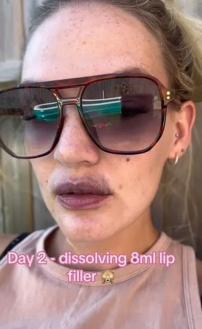 @amy.giovannini Dissolving my 8ml migrated filler ?The sun got the better of me today ? #dissolvingfiller #lips #fyp #foryou #trending #foryoupage ♬ What Was I Made For? [From The Motion Picture "Barbie"] - Billie Eilish