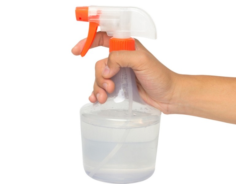 Trik s rozprašovačom môžete vyskúšať najmä na bavlnu a pleteniny. Rozprašovač naplňte obyčajnou vodou a jemne prestriekajte oblečenie zavesené na vešiaku. Vlhkú látku rukou uhlaďte a nechajte voľne preschnúť. Tento spôsob určite nie je vhodný na hodváb, na ktorom by mohli zostať škvrny.