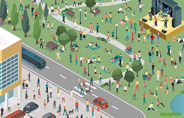 Dobre sa zapozerajte na tento rušný obrázok, ktorý znázorňuje ľudí v rôznych aktivitách. Niektorí sú na prechádzke, iní cvičia, či relaxujú v parku. Niekde medzi nimi sa však nachádza aj muž, ktorý priniesol kyticu svojej vyvolenej. Dokážete ho nájsť?