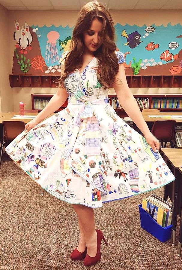 Ide vlastne o tvorivý školský projekt, ktorý učiteľka zaviedla už minulý rok a pre veľký úspech ho plánuje robiť so žiakmi pravidelne. Do triedy priniesla jednoduché biele šaty a študentom dala za úlohu, aby ich pomaľovali podľa svojej fantázie. Tí sa do toho s radosťou pustili a toto je výsledok, za ktorý učiteľka získala tisíce pozitívnych lajkov a ohlasov.