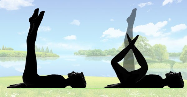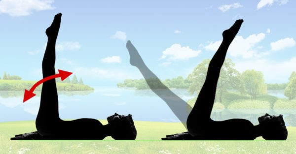 Krátky oddych a pokračujte. Základná poloha s nohami dohora, nohy prekrížte a ohnite tak, aby kolená šli od seba, snažte sa mierne pritláčať. Vydržte v pokrčenej polohe pár sekúnd a vráťte sa nohami hore. Opakujte 10-krát, potom prekrížte opačne (s druhou nohou navrchu) a urobte ďalších desať.