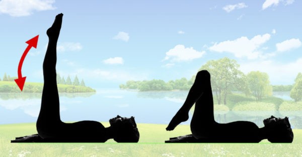 Ľahnite si chrbtom na podložku, ruky držte pozdĺž tela, nohy zdvihnite do výšky, špičky vystrite, chvíľu vydržte, potom nohy ohnite v kolenách a vráťte sa do východiskovej polohy. Urobte 10 opakovaní, pomôcť si môžete tak, že si ruky dáte pod zadok. Pri správnom cvičení budete cítiť napätie v prednej časti stehien.