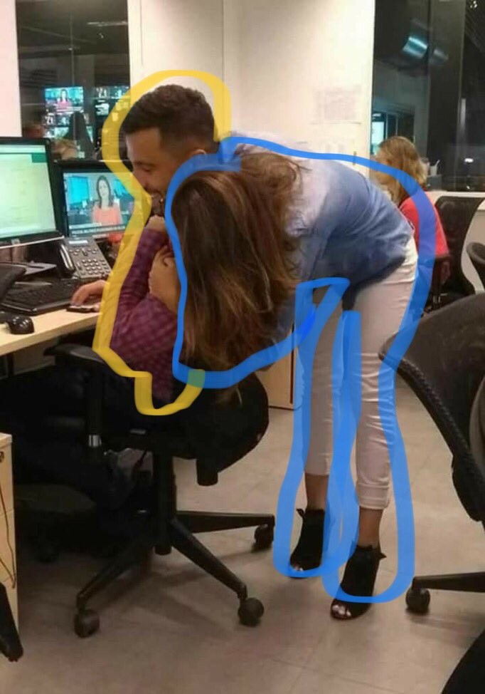 Asi vám udrel do očí detail, ktorí si všimla aj veľká väčšina ľudí. Neznámy muž, ktorý objíma pravdepodobne kolegyňu v práci, má ženské nohavice a topánky na podpätkoch! Alebo že by to bolo úplne inak?