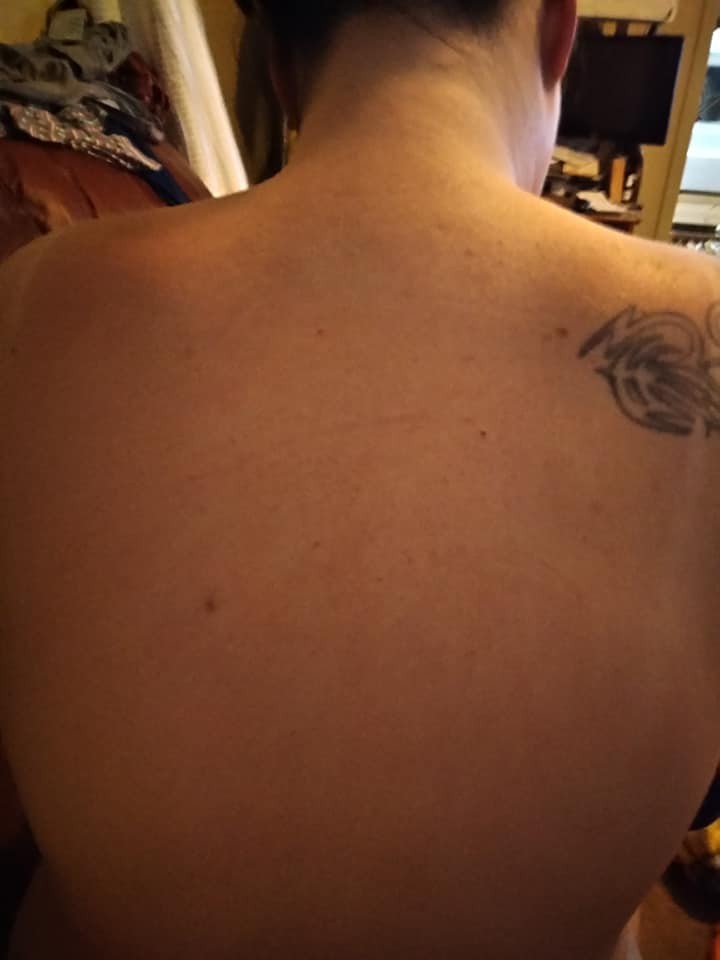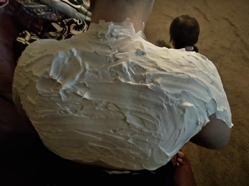 Na svoj spálený chrbát nastriekala penu na holenie obsahujúcu mentol. Penu nechala asi 20 minút pôsobiť, potom ju osprchovala vlažnou vodou. Fotky pred a po sú takmer neuveriteľné! Po začervenanej pokožke nie je stopy!