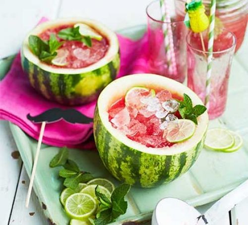Ak chcete pred návštevou poriadne zabodovať, pripravte si aj špeciálnu verziu melónového drinku s alkoholom. Do základného receptu stačí pridať trochu neochutenej vodky. Hotový nápoj môžete podávať aj priamo z vydlabaného melóna. Nezabudnite pridať ľad!