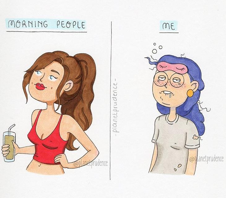 Jej vtipné ilustrácie zachytávajú každodenné problémy žien a práve ich humorné spracovanie má pracujúce ženy trochu zabaviť. Na trhu je už aj jej kniha ilustrácii, ktorá ide na dračku. Sama Prudence sa v živote musela popasovať s rôznymi problémami, ktoré boli všetko len nie smiešne. Časom si však povedala, že na negatívne veci sa predsalen dá pozrieť aj z iného uhla pohľadu a problémy pretavila do spomínaných kresieb. V koľkých ste sa našli vy?
