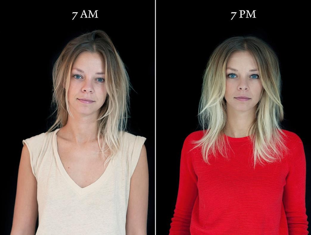 Dôkazom sú fotky belgickej fotografky Barbary Iweins, ktorá sa podujala na zvláštny experiment. Rôzne typy ľudí nafotila o 7. ráno a v ten istý deň o 7 hodine večer. Ako to celé dopadlo? To si pozrite na fotkách a uvidíte rozdiel.