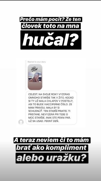 Sama si v minulosti prešla kadečím a veľmi dobre vie, ako niektoré slová dokážu zraniť. Na margo toho, ako vyzerá, si už vypočula rôzne nelichotivé komentáre. Najnovšie jej istý fanúšik odkázal, že na svoj vek 23 rokov vyzerá staro, mala by schudnúť a konečne sa usadiť!