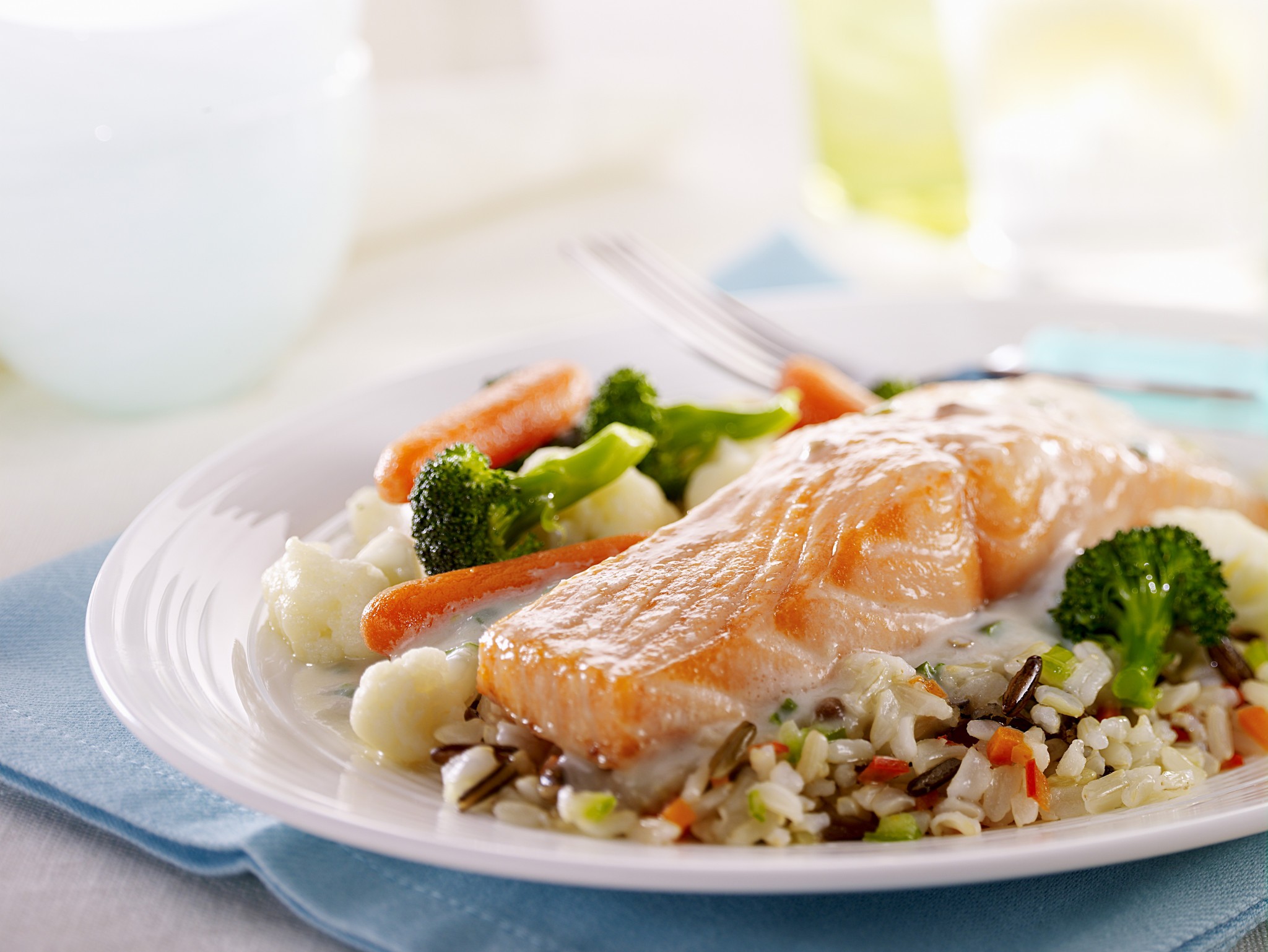 - Obed: Losos na grile, dusená zeleninová zmes