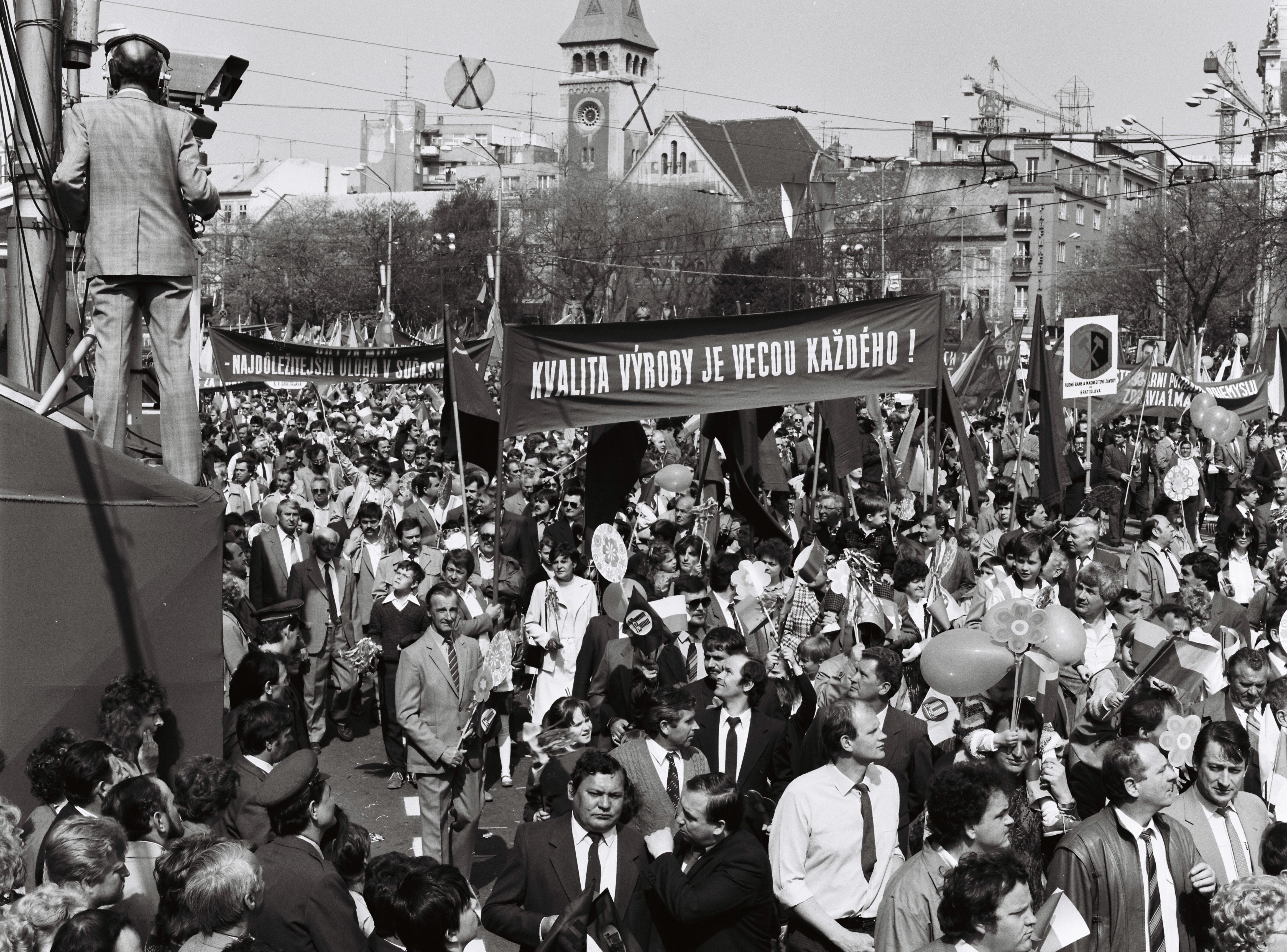 Davy veselo zdravili popredných komunistických funkcionárov, ktorí sa z vyzdobených tribún prihovárali občanom. Oslavovali sa úspechy socialistického režimu a demonštrovala sa jeho sila. A ako to celé vyzeralo? Aj takto...