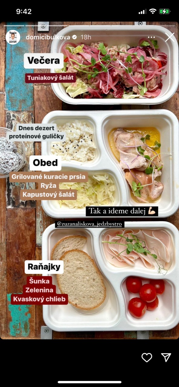 "Jednoducho som si povedala, že chcem ísť na určitú hmotnosť... Idem to robiť motivačne. Bude to motivovať mňa a verím, že to bude motivovať aj niektorých z vás... Už sa aj ja chcem sama sebe páčiť a dobre sa cítiť. Aj keď mi Michal hovorí, že sa mu páčim, robím to hlavne pre seba," priznala blondína. Ako prvé radikálne upravila svoj jedálniček. Ten jej robia na mieru a hoci je dosť odlišný od toho, čo donedávna jedávala, rozhodne nehladuje. Väčšinu toho, čo cez deň zje, zverejňuje aj na instagrame a ide o naozaj chutné jedlá. Tenistka je dôkazom, že aj pomocou zmeny stravy s minimálnym pohybom sa dá aj za jeden mesiac schudnúť. Ona sama je o 4,4 kila ľahšia! Hoci táto radikálna zmena bola na začiatku náročná, všetko sa u nej zmenilo. "Všetko je to len návyk," priznala a dodala: "Cítim sa lepšie, ale pokračujeme." Športovkyňa dokonca prezradila, že po mesiaci nemá chuť ani na milovanú kolu a sladkosti...