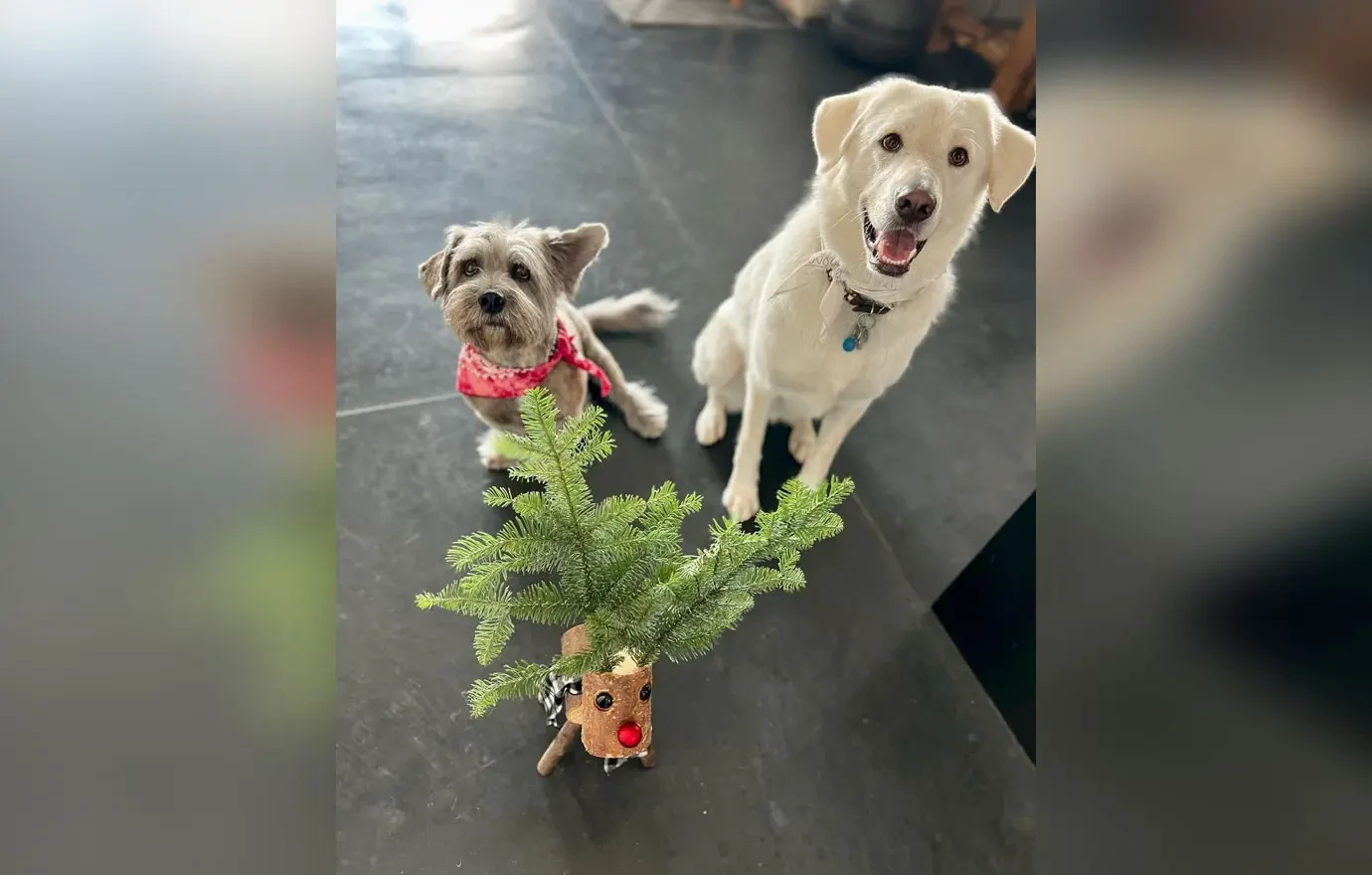 „Sú späť!“ okomentovala zábery stručne. Rozkošné vianočné soby sú z dreva, majú oči a červené nosy a parohy vyrobené z ihličia. Jej milované soby nemá vo vianočnej výzdobe po prvýkrát, mala ich aj v minulom roku, keď ich dokonca “predstavila” svojim dvom psom, pre ktorých to bola hračka a snažili sa ich rozhryznúť.
