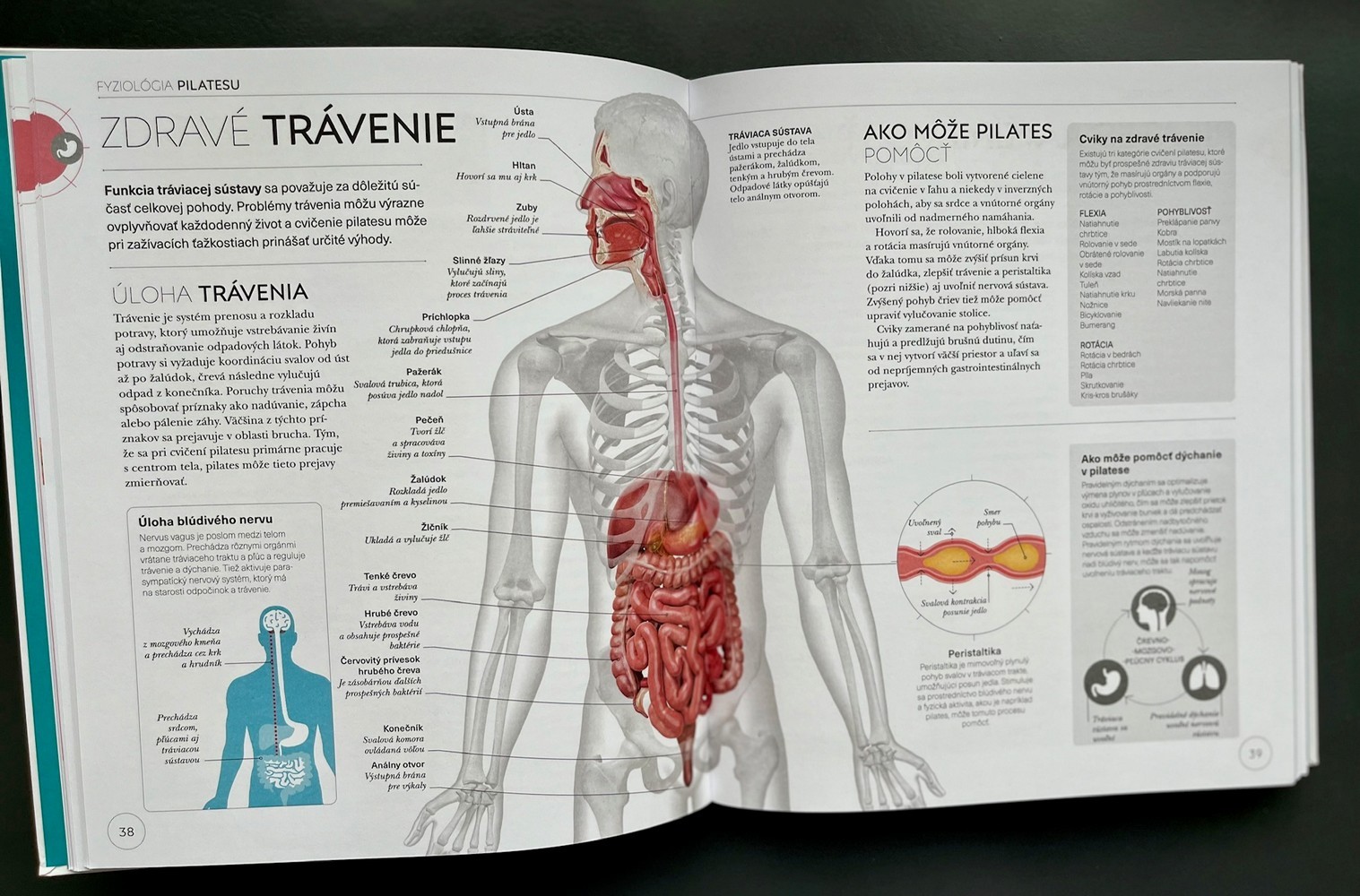 Nová kniha Pilates je komplexný sprievodca, naozaj krásne graficky spracovaná kniha, v ktorej nájdete množstvo fotografií, nákresov a ilustrácií. Plus vedecky podložené informácie, cvičenia na posilnenie, pohyblivosť, na stabilitu aj rotáciu.