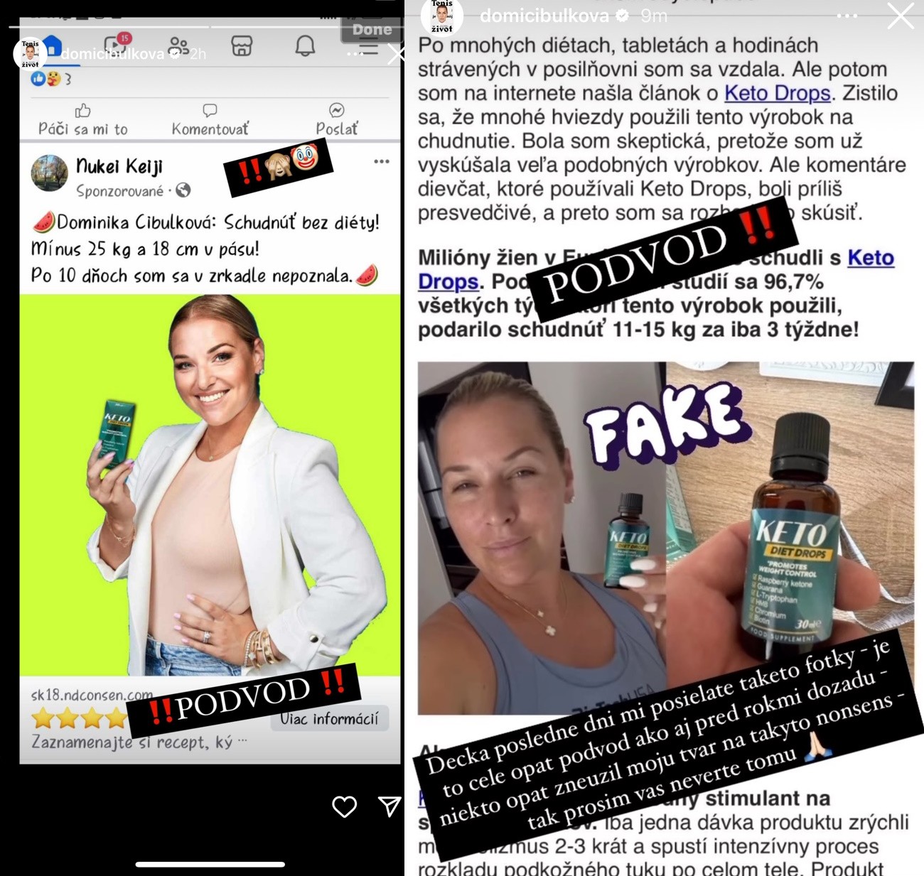 Dominika sa tak pre mnohé ženy stala inšpiráciou, že ak človek naozaj chce a pracuje na sebe, tak sa mu podarí schudnúť. A Cibulkovej chudnúcu premenu okamžite využili špekulanti! Sociálnymi sieťami totiž už pár dní kolujú reklamy na rôzne chudnúce produkty, ktorých tvárou je práve tenistka. Ona sama však s nimi nemá nič spoločné! "Je to celé opäť podvod, ako aj pred rokmi dozadu. Niekto opäť zneužil moju tvár na takýto nonsens, tak prosím vás, neverte tomu," nechala sa počuť Cibulková.