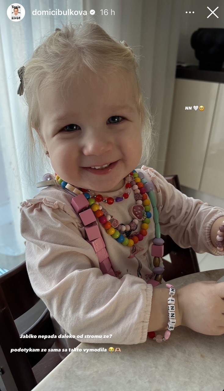 Cibulková sa pochválila fotkou Ninky, ktorá roztopí srdcia mnohých mamičiek. Blonďavé dievčatko sa na nej veselo usmieva a jej krk a ruky zdobí hneď niekoľko náhrdelníkov a náramkov. "Jablko nepadlo ďaleko od stromu, že?" zavtipkovala Dominika. Ak by ste si mysleli, že dcérku sama takto vyparádila, omyl! "Podotýkam, že sa sama takto vymódila," dodala tenistka. Vyzerá to tak, že jej doma vyrastá ďalšia módna influencerka...