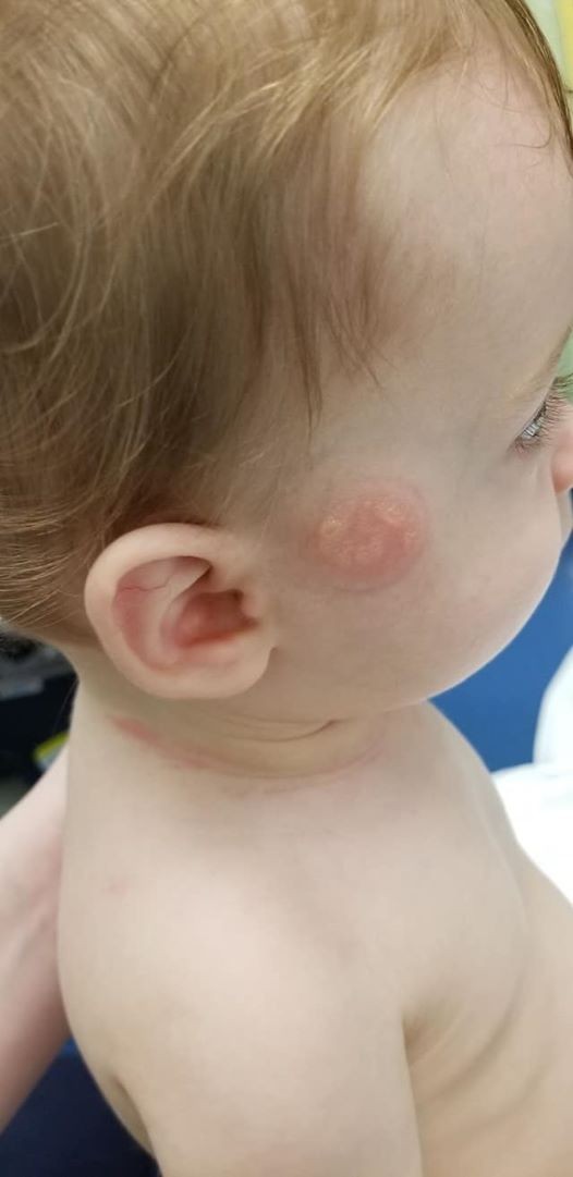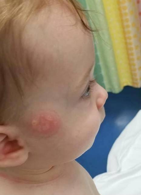 Kristen Milhone z Michiganu si pri hre so svojim malým synom všimla, že má na tvári zvláštny fľak. Keď sa pozrela zblízka, zistila, že je to popálenina.