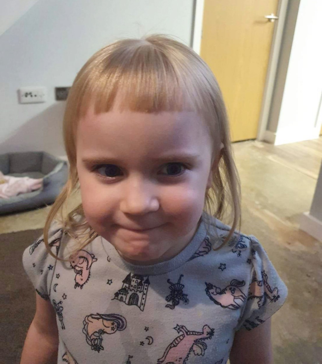 Pravdepodobne si myslel, že na ostrihaní ofiny na jemných detských vlasoch nemôže byť predsa nič ťažké, no trochu sa prerátal. Použil totiž obyčajné kuchynské nožnice a výsledok je naozaj komický, píše The Sun.